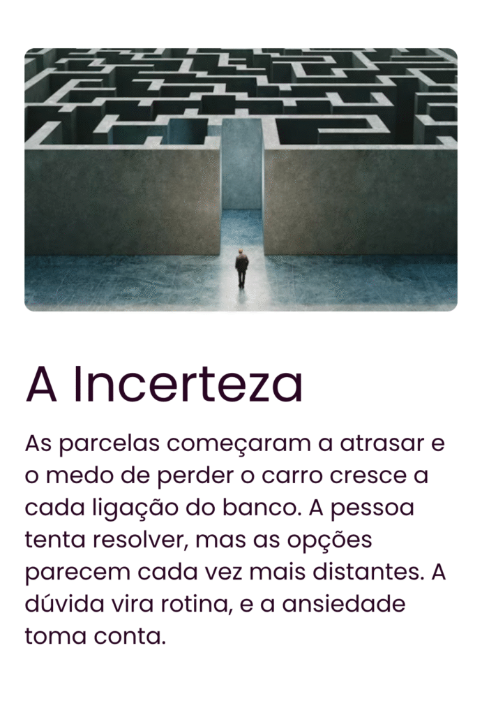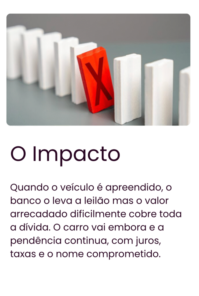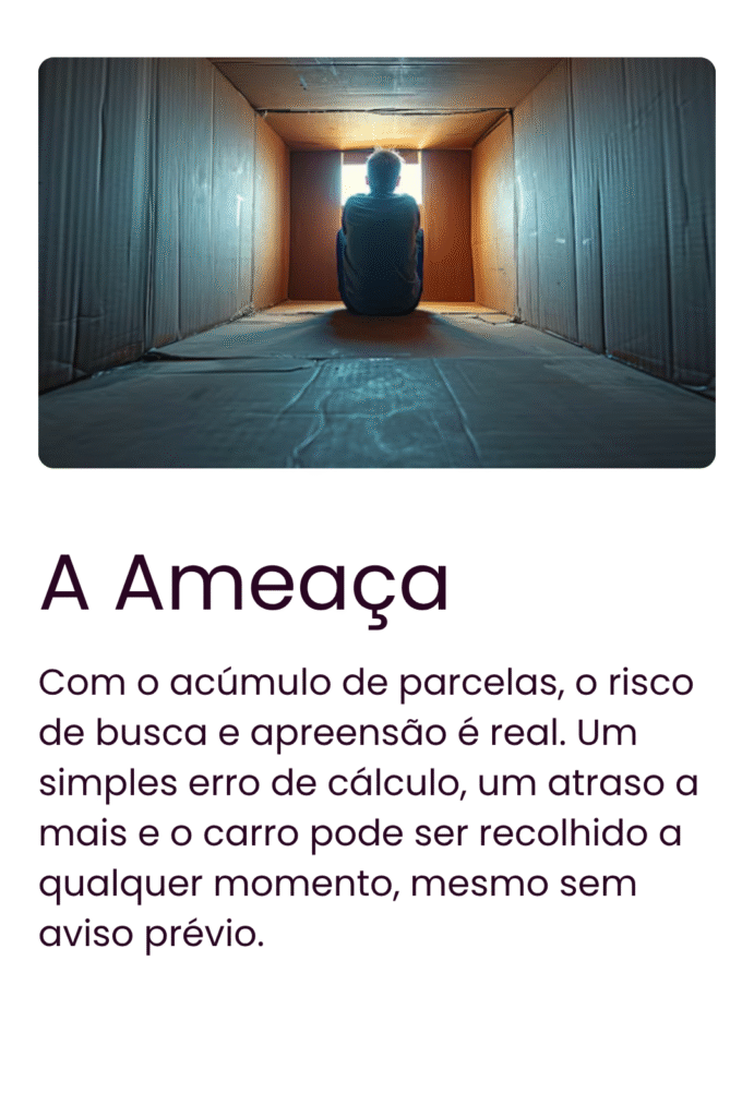 Avaliamos sua situação de forma transparente quanto está devendo, qual o status do carro e o risco real de busca e apreensão. Você entende o cenário completo antes de tomar qualquer decisão.