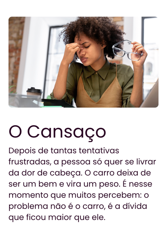 Com a dívida resolvida e o carro vendido, você sai do sufoco e retoma sua tranquilidade financeira. Sem risco de leilão, sem preocupação, sem mais ameaças.